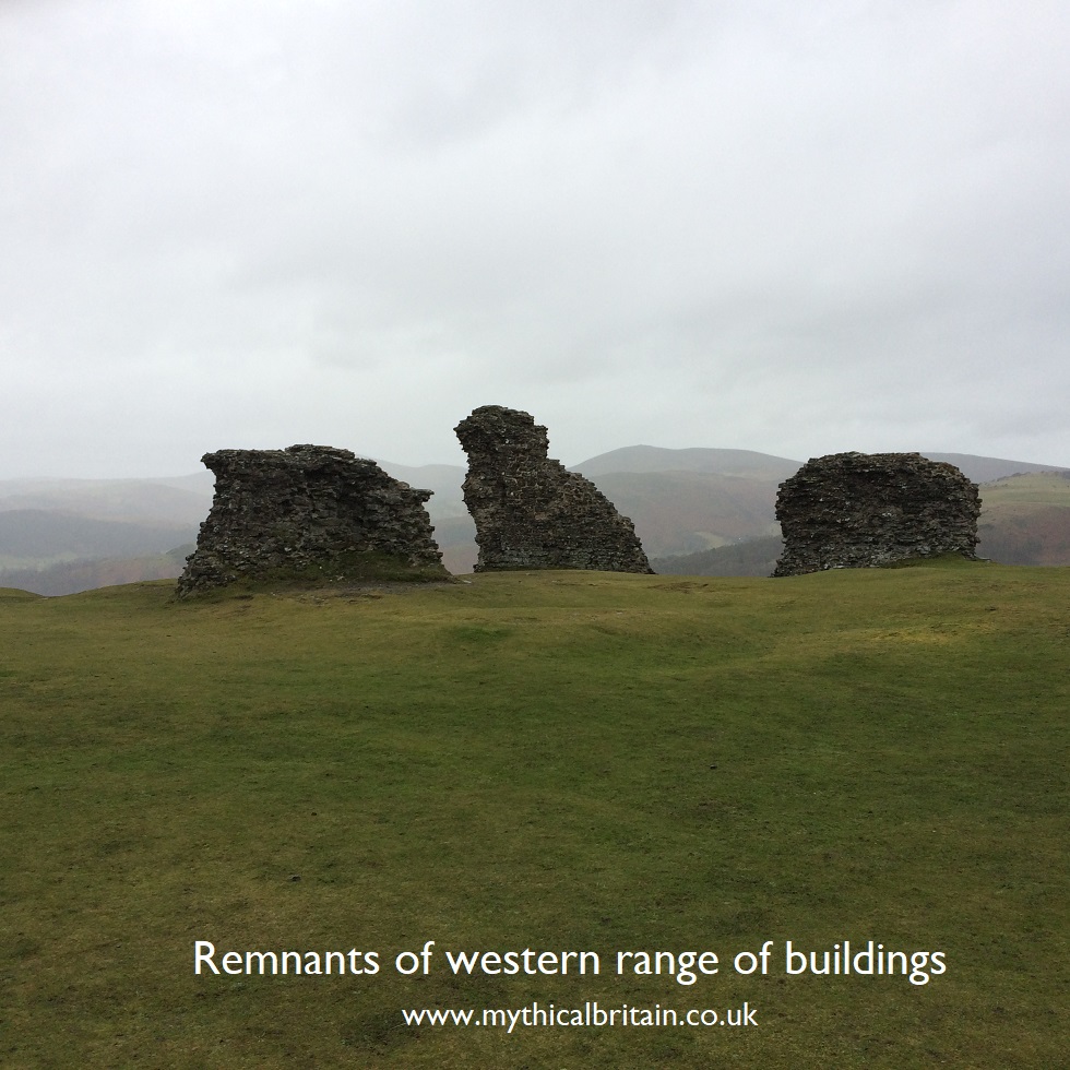 To the south was a large hall – apparently with grand windows – and a D-shaped tower; to the west was a suite of outbuildings. The keep appears to have been protected on the inside by another rock-cut ditch although this may, like that at Degannwy, also have served as a quarry for building materials.